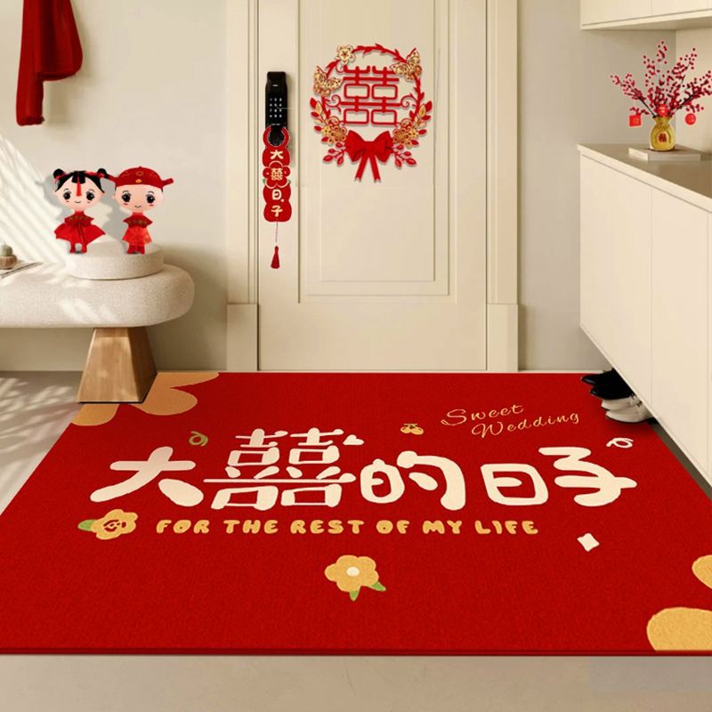 结婚地垫新婚喜字入户门婚房布置地毯门口进门卧室红门垫喜庆喜垫