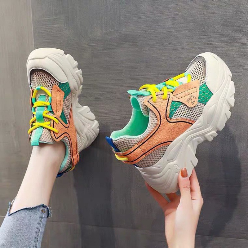 鞋子女老爹鞋女2023年新款网面透气阿甘女鞋百搭厚底内增高老爹鞋
