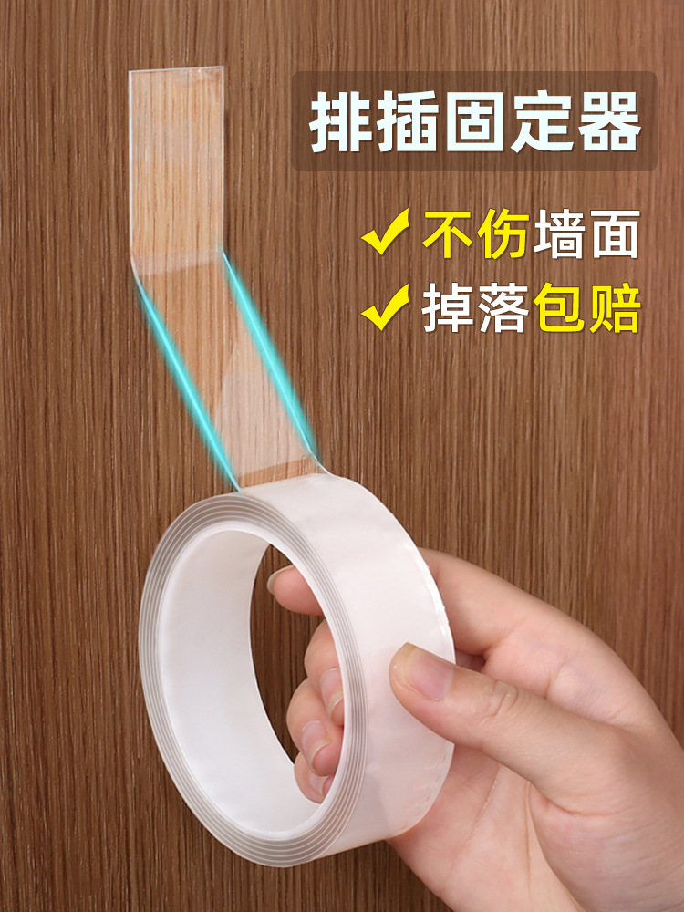 排插固定器壁挂插座收纳插线板拖线板无痕免打孔粘贴插座固定