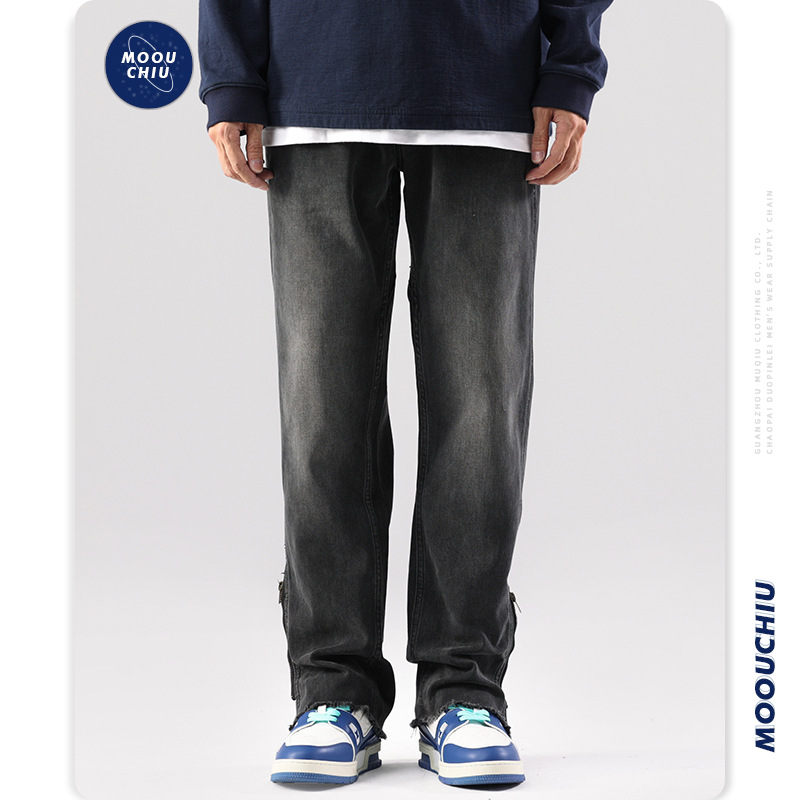 沐丘男装∣vibe风美式高街牛仔裤男ins裤脚拉链痞帅街头直筒长裤