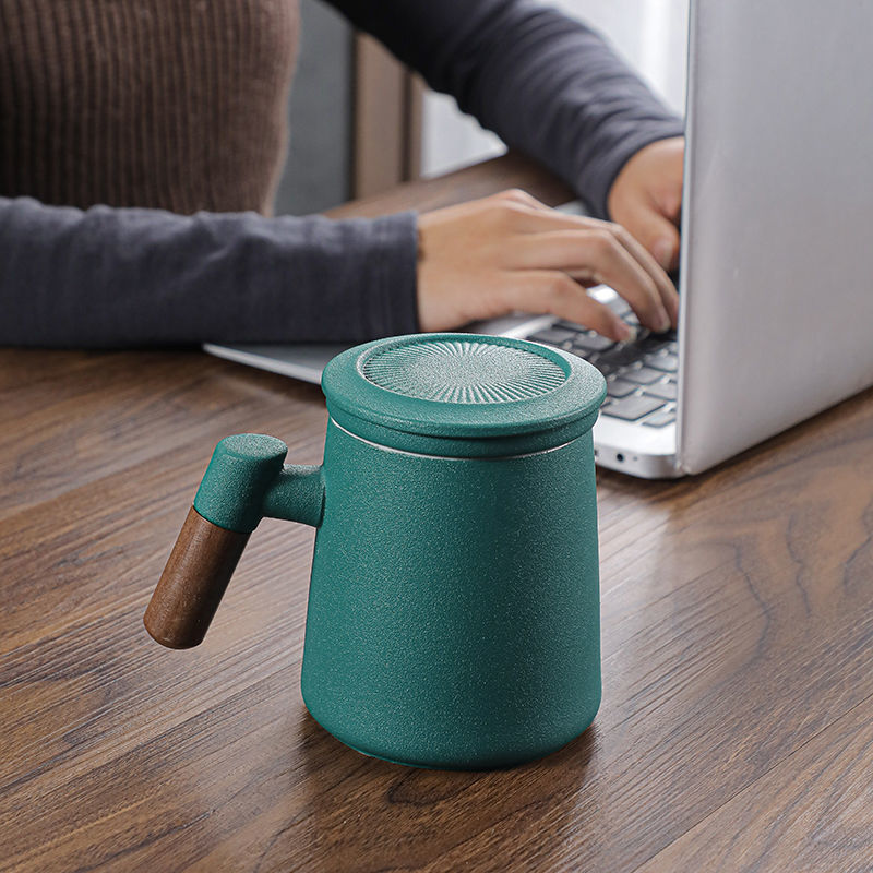 茶杯陶瓷带盖过滤手绘泡茶杯月牙茶水分离个人家用办公室喝水杯女