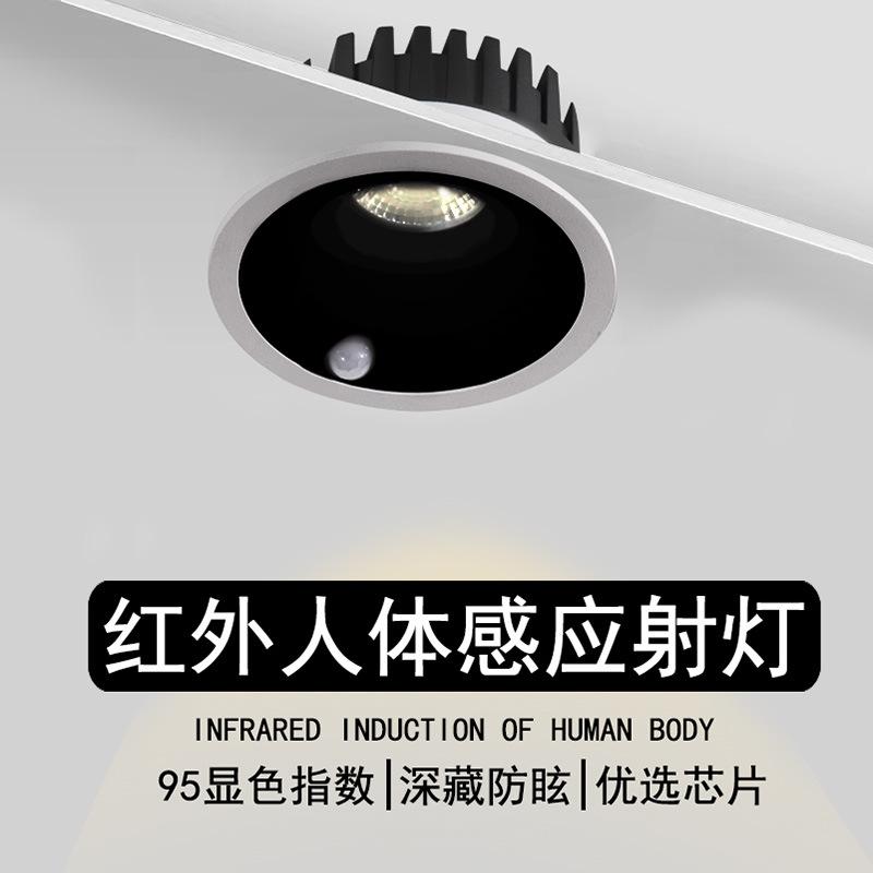 红外人体感应射灯嵌入式深藏防眩玄关走廊过道楼梯led天花灯筒灯