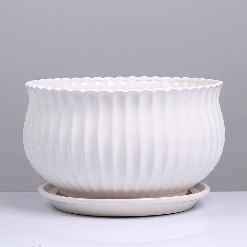特大号白色花盆陶瓷带托盘圆形阳台室内多肉植物盆栽绿植花盆批发