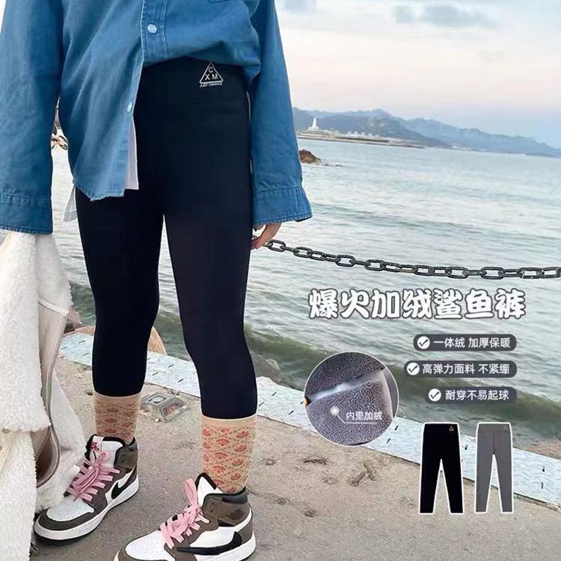 女童加绒打底裤秋冬外穿中大童加绒加厚一体绒裤子女童鲨鱼裤洋气
