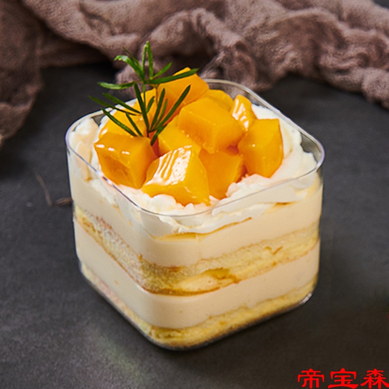 T慕斯杯布丁杯蛋糕杯塑料一次性杯子带盖透明木糠杯方形透明
