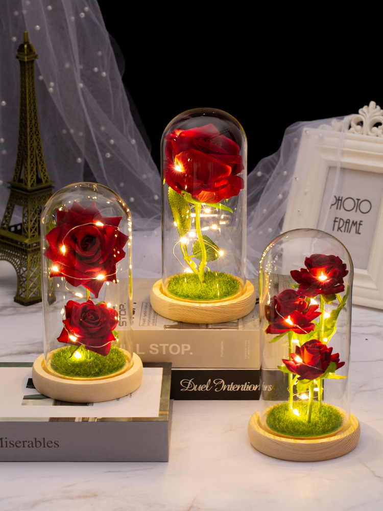 教师节玻璃罩玫瑰花浪漫发光摆件送老师同学闺蜜女友生日礼物