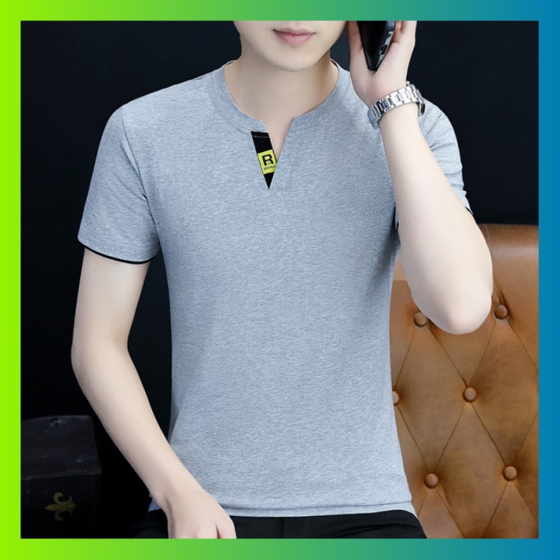 2023新款夏季V领半袖男士短袖T恤男款棉质纯色韩版polo衫打底衫潮