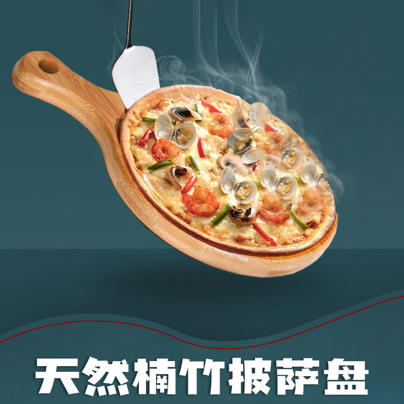 带手柄盘子披萨盘烤盘牛排盘子餐厅面包蛋糕甜品实木托盘木制家用