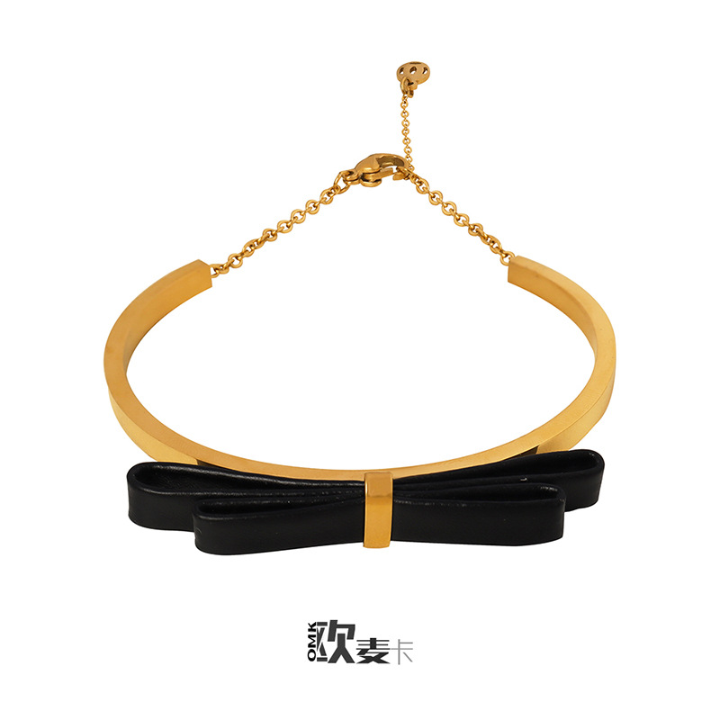 韩版网红钛钢不褪色手环ins冷淡风时尚真皮蝴蝶结手镯镀金手饰品