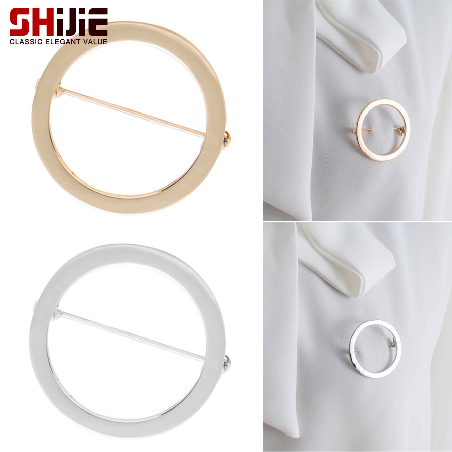 时尚简约防走光开衫扣 金银色几何圆形合金胸针领针胸花 网红配饰