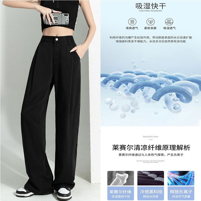 天丝牛仔裤女2023夏新款高腰显瘦垂感薄款宽松阔腿裤子冰丝直筒裤