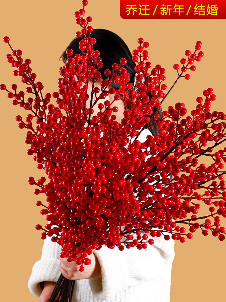 红果发财果仿真花摆件客厅冬青尤加利叶装饰新年乔迁结婚干花摆设