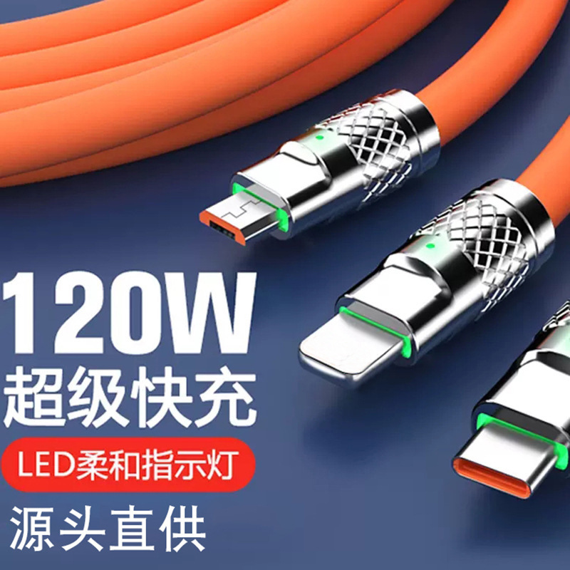 120W锌合金机客三合一数据线适用苹果华为快充线带灯一拖三数据线