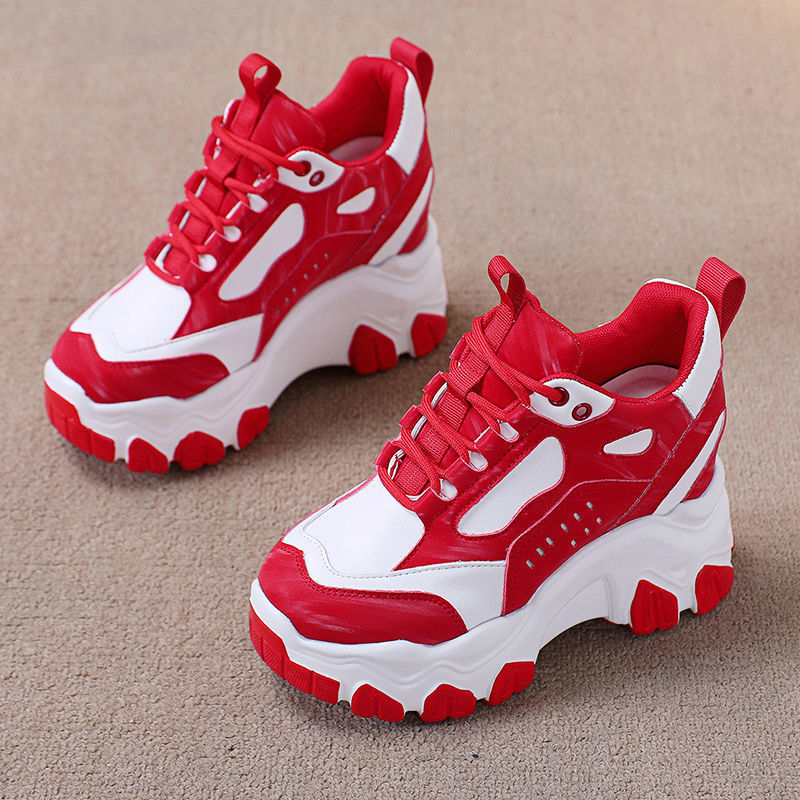 内增高小白鞋女春秋季皮面松糕厚底休闲百搭2023新款小个子老爹鞋