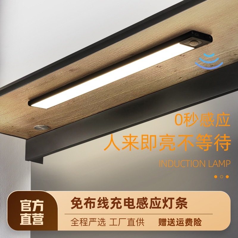 超薄人体感应长条灯带充电式免布线LED无线酒衣柜自粘橱房柜底灯