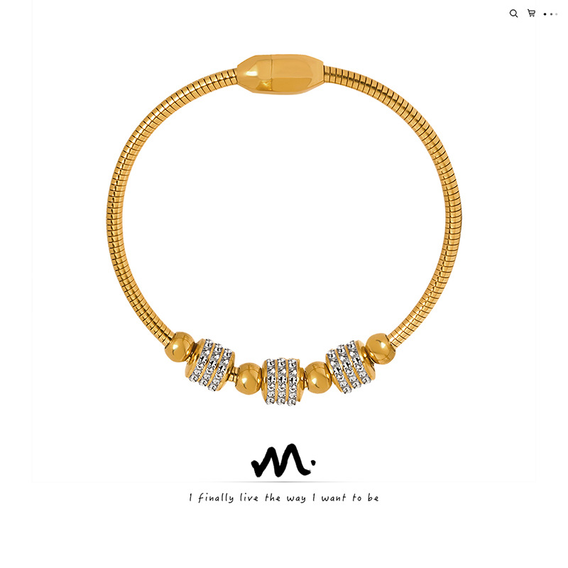 跨境欧美2023新款磁铁吸合个性设计镶嵌满钻手镯钛钢镀18K金手环
