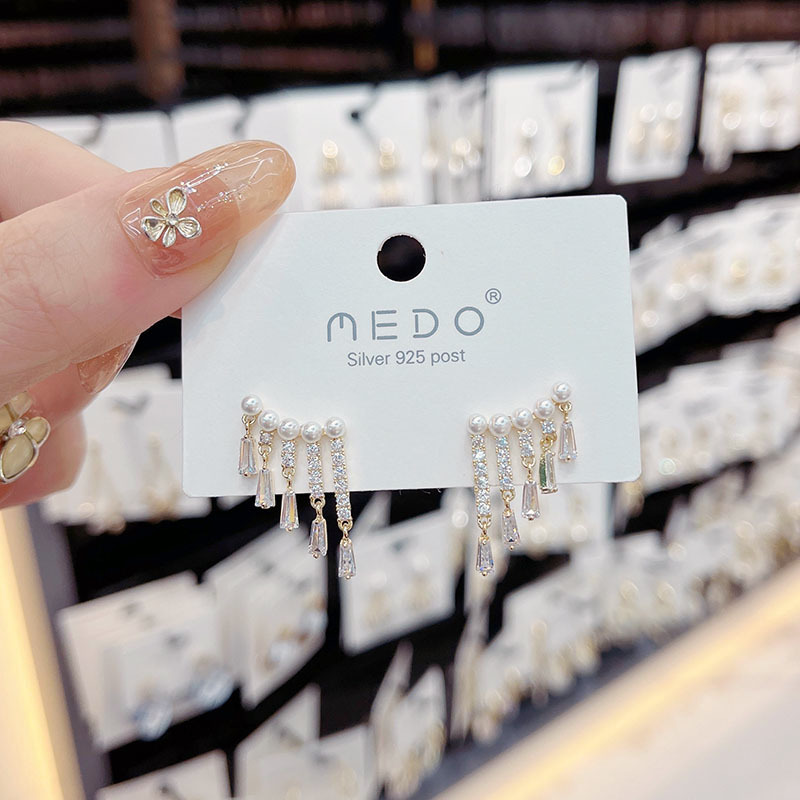 S925银针抖音同款个性精致耳钉女耳饰时尚气质珍珠耳排式流苏耳环