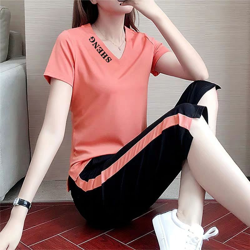 单件/套装 短袖套装女夏季2023新款韩版宽松时尚大码休闲服两件套