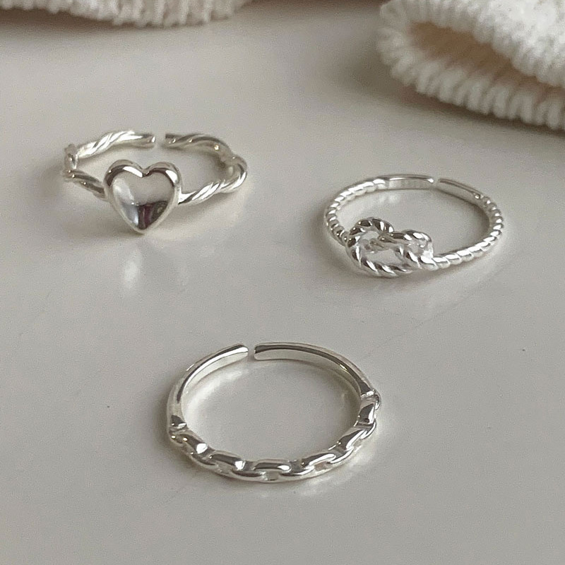 韩版小众设计爱心麻花细戒指女冷淡风时尚个性简约百搭款开口指环