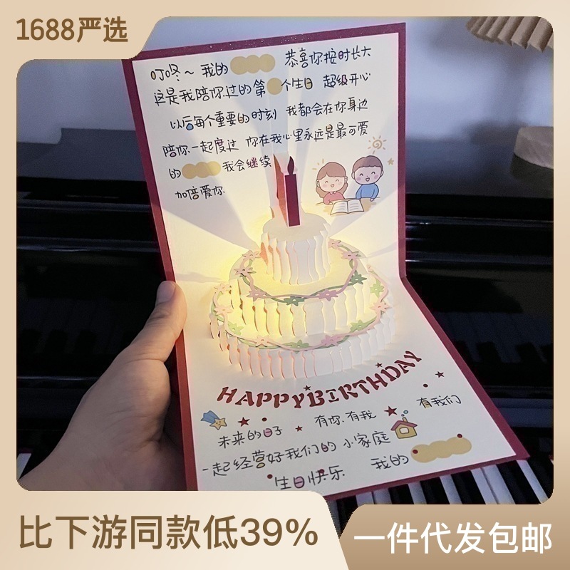 手绘插画音乐生日贺卡 ins小众感生日手工祝福卡片送男女朋友