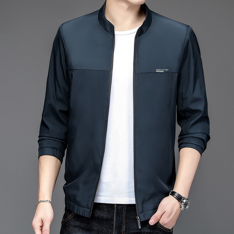 中青年夹克男春秋薄款商务休闲宽松夹克衫男士翻领爸爸装外套