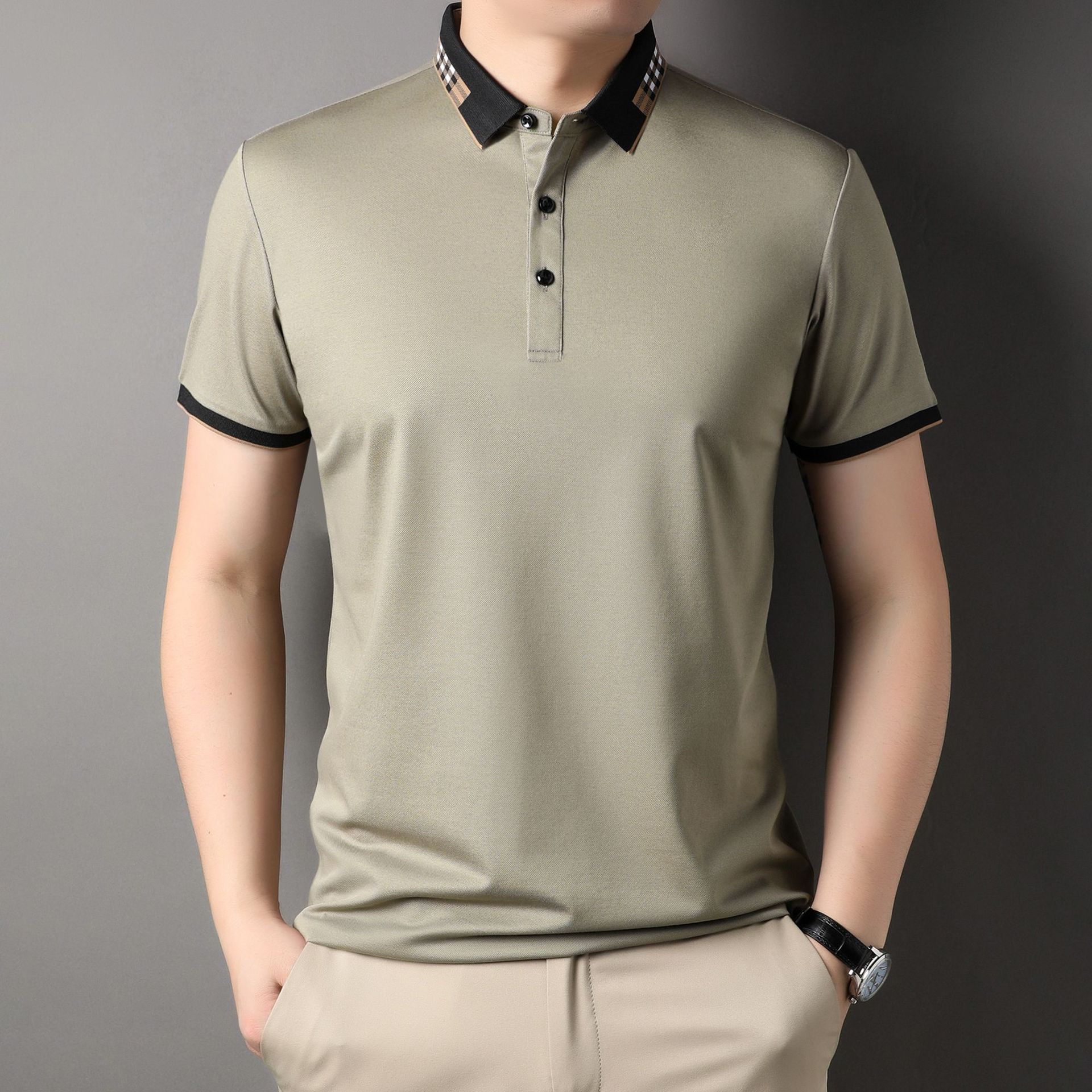 夏季新款短袖t恤男纯色中年爸爸装品质棉料polo衫商务翻领体恤潮