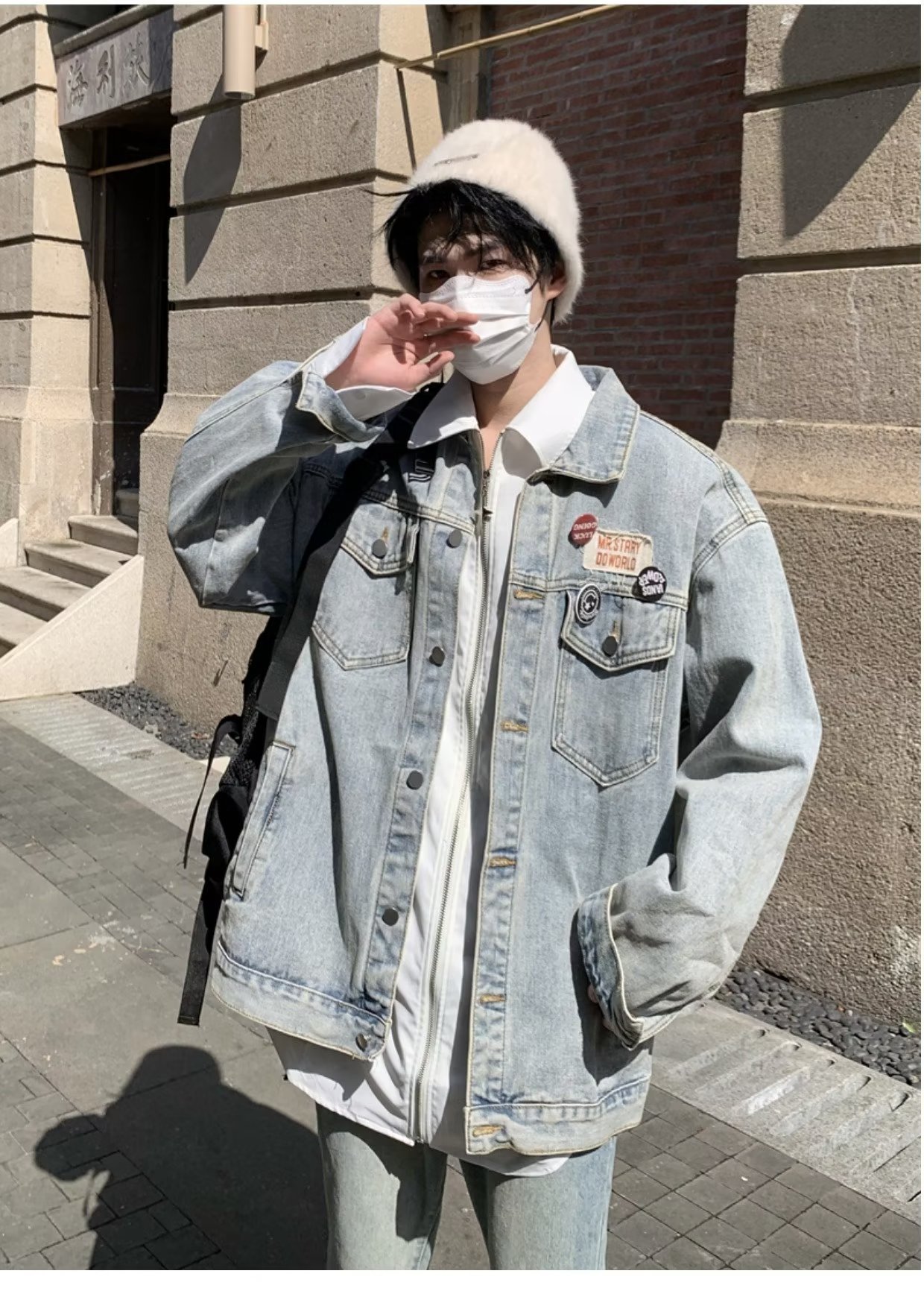2023春秋美式复古牛仔夹克男水洗休闲外套男士宽松百搭休闲上衣潮