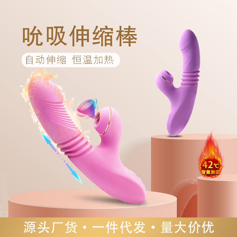 跨境吮吸伸缩玉兔震动棒新款多功能AV棒成人情趣智能加温按摩棒