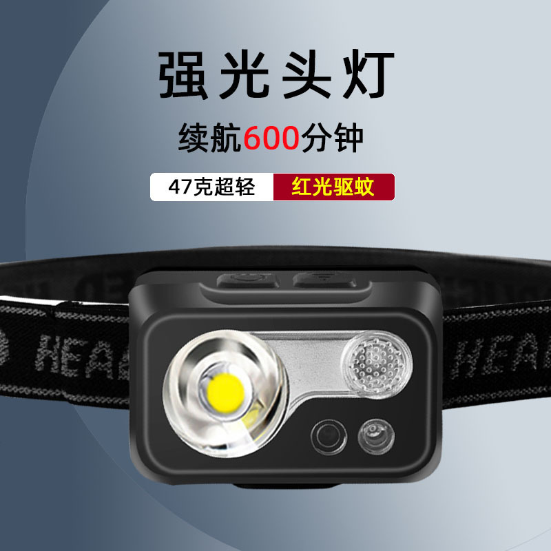 智能感应usb充电感应头灯led夜钓鱼头戴式强光夜跑小头灯户外头灯