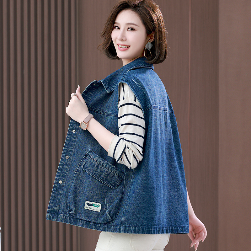 牛仔马甲女短款休闲纯棉背心2023春秋新款中年妈妈大码宽松马夹潮
