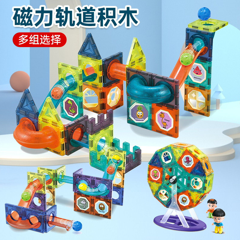跨境彩窗磁力片玩具管道磁铁儿童滑道滚珠磁性DIY积木拼接玩具
