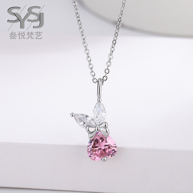 S925纯银卡通粉钻兔子项链女本命年可爱气质设计感锁骨粉锆链批发