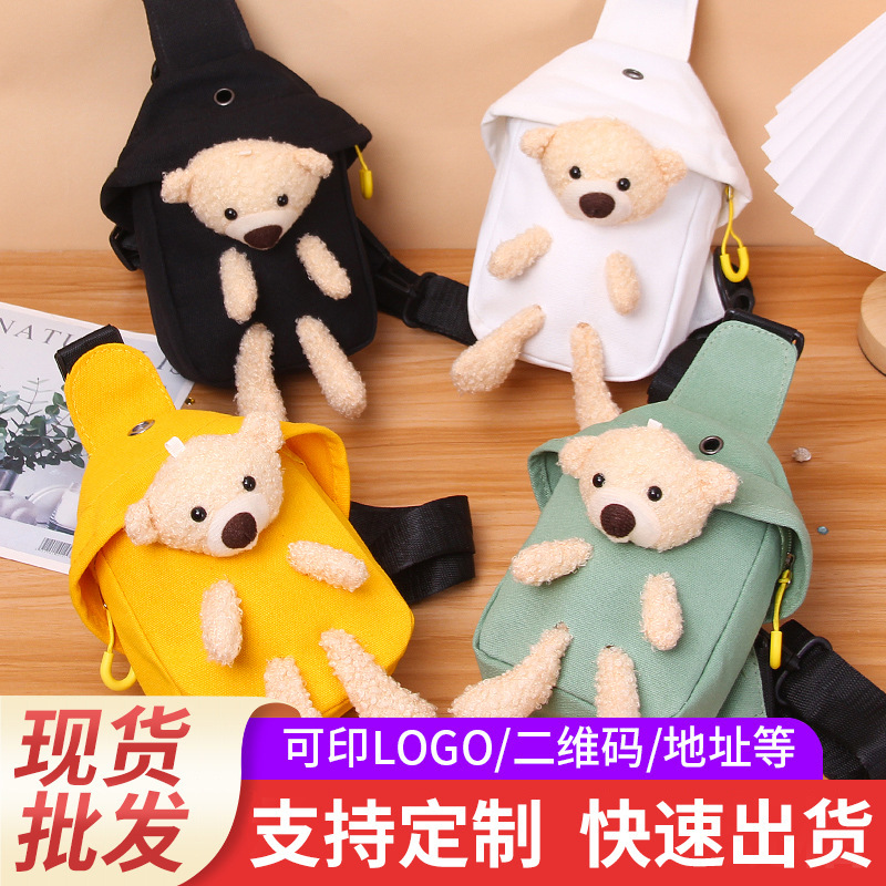 2023流行新款小熊帆布包斜挎包潮单肩包女卡通ins可爱小包包批发
