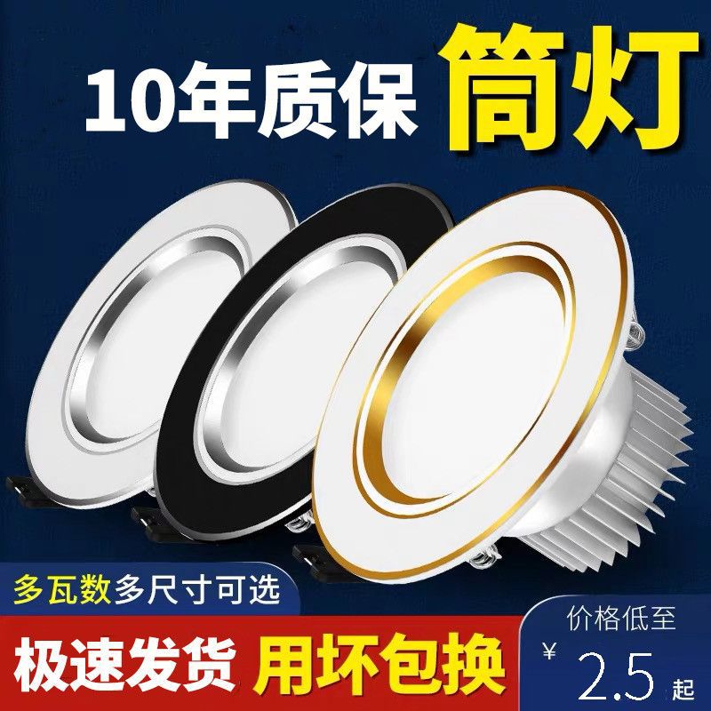 厂家直销LED筒灯嵌入式射灯客厅吊顶孔灯洞灯天花灯具牛眼灯2.5寸