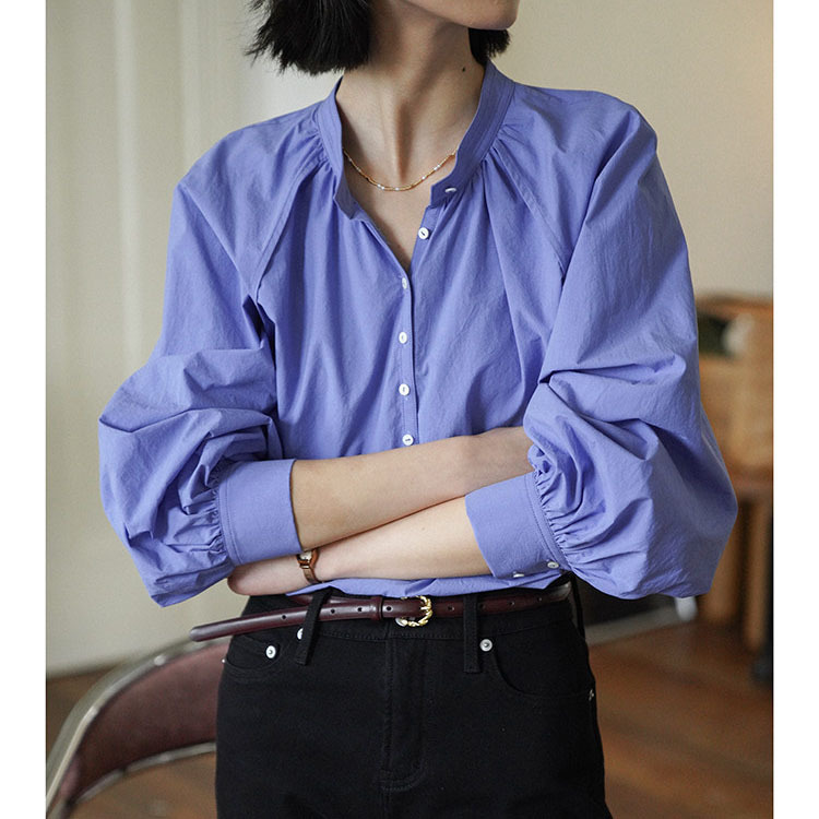 复古优雅知性小立领衬衫气质春装女设计感小众上衣泡泡袖衬衣外穿