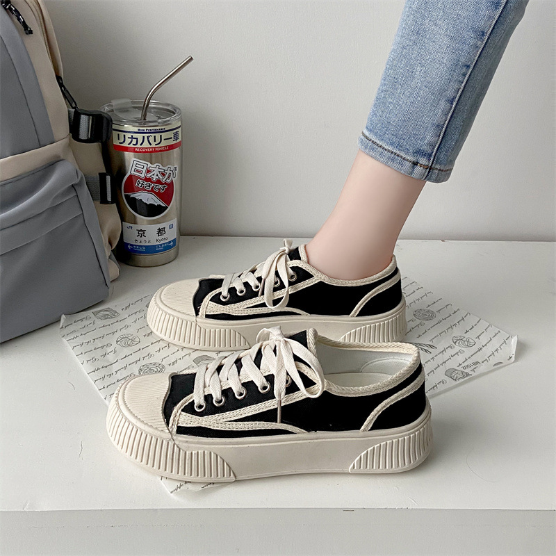 2023年夏季新款帆布鞋女厚底饼干鞋休闲板鞋松糕小白鞋ins潮爆款