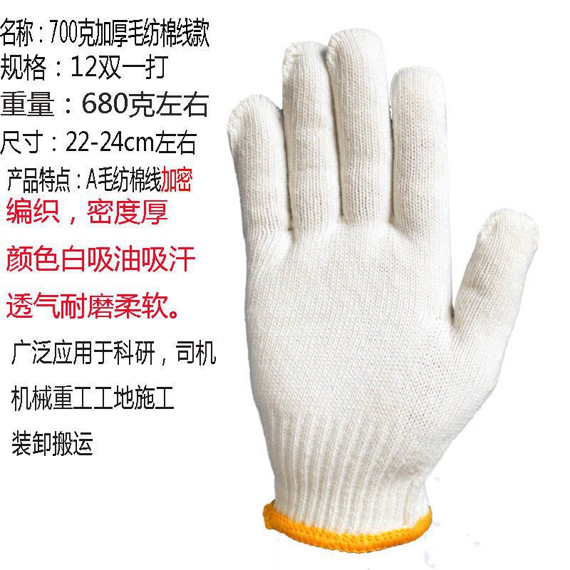劳保手套加厚耐磨棉线手套双层编织涤棉棉涤工作工地劳动棉纱手套