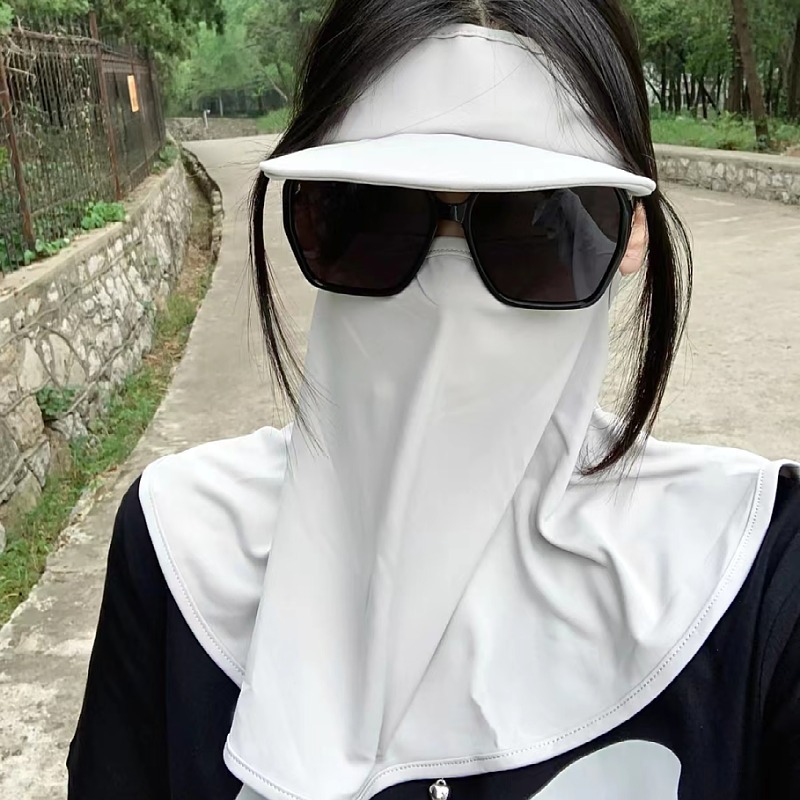 面罩面纱开车护颈薄防紫外线女全脸夏季遮阳冰丝骑行遮脸口罩