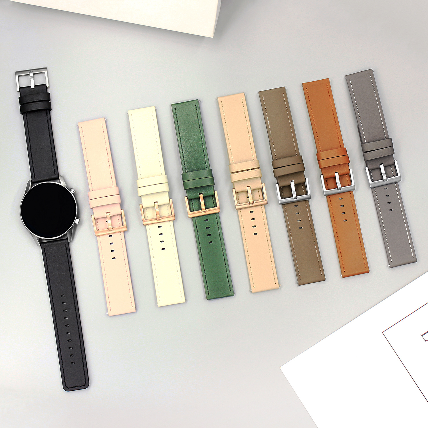 22mm20mm真皮表带适用华为watchgt2/3pro/watch3牛皮质平纹荣耀es