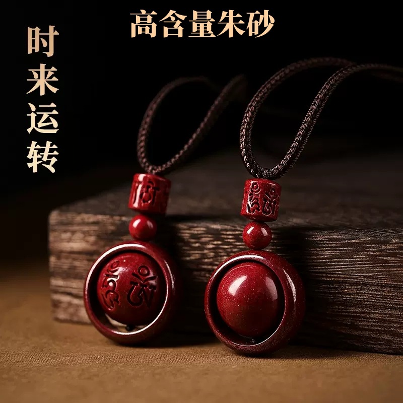 天然原矿朱砂时来运转吊坠紫金砂六字真言转运珠挂坠戒指指环挂件