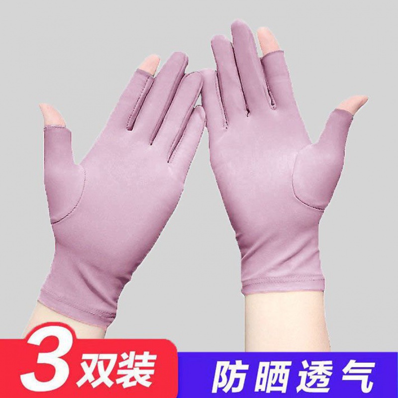 防嗮手套冰丝薄款夏季春秋天漏半截露采摘茶防晒薄款骑行开车女士