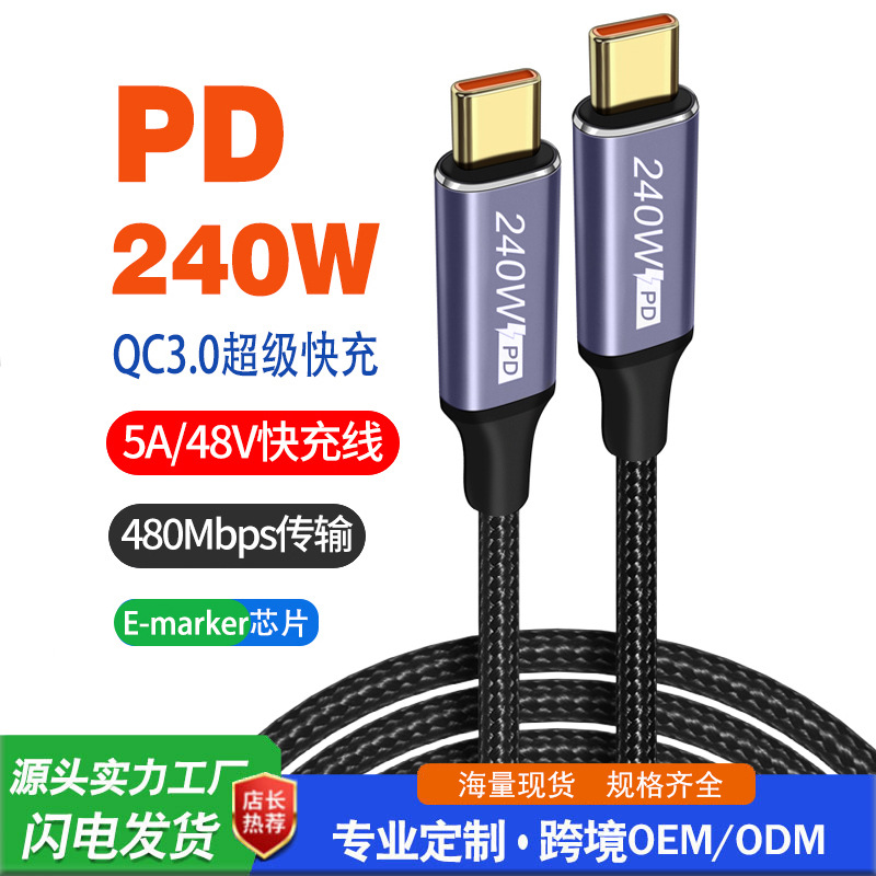 跨境新品PD240W快充线Type-CtoC数据线双头兼容100W66W18W带芯片