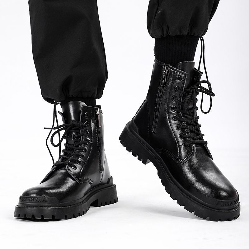 马丁靴男款2022秋季新款男士高帮工装靴子英伦风拉链中帮黑色皮靴