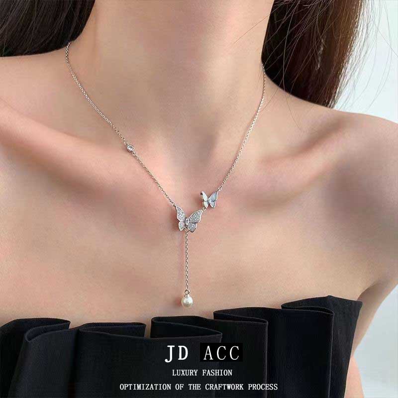 温柔蝴蝶珍珠项链女清新气质小众设计颈链轻奢高级感百搭锁骨链潮