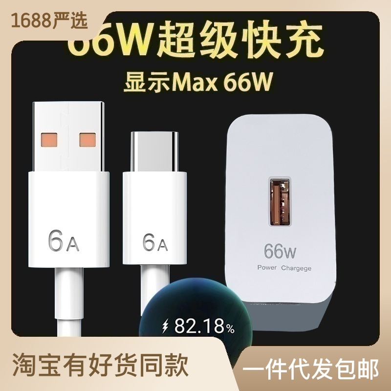 千麦通适用华为荣耀70充电器50pro 60 P50 66W超级快充头数据线
