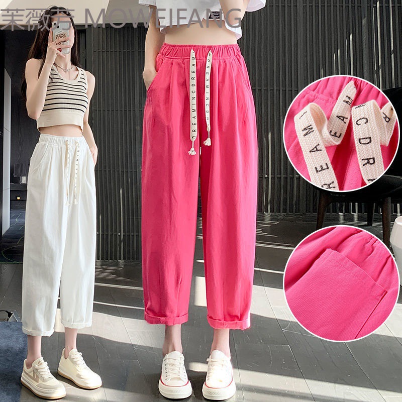 显瘦哈伦裤子女裤夏超宽松萝卜裤彩色高腰直筒九分八分阔腿休闲裤