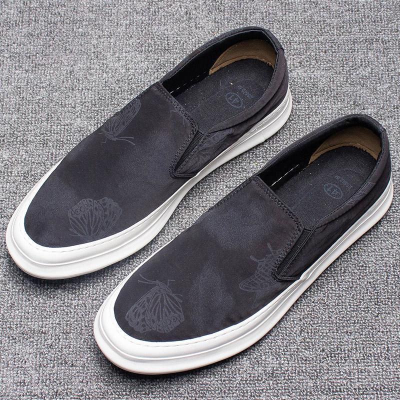 印花老北京布鞋男2021夏季新款韩版潮流百搭一脚蹬懒人厚底帆布鞋