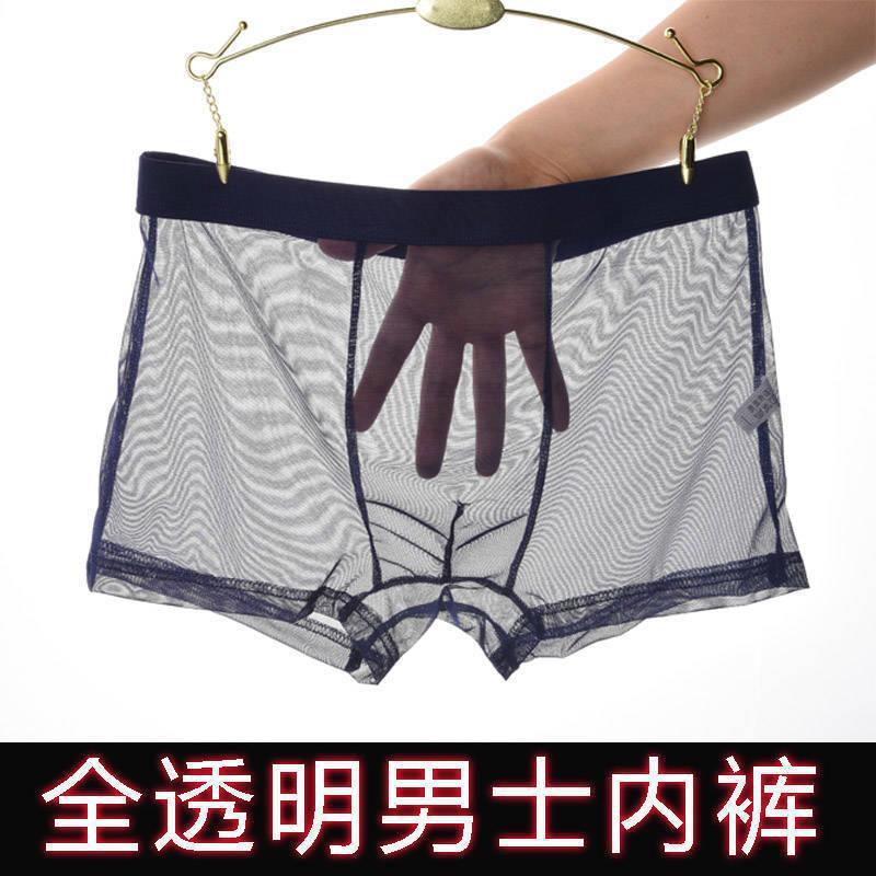 全透明男士性感平角内裤薄冰丝网纱大码四角冰丝印花四角裤