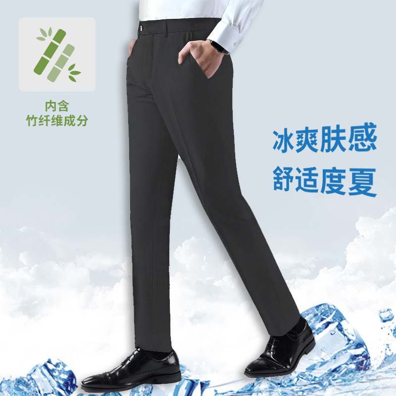 夏季新款空调冰感西裤 弹力透气免烫纯色抗菌冰丝男夏裤商务休闲