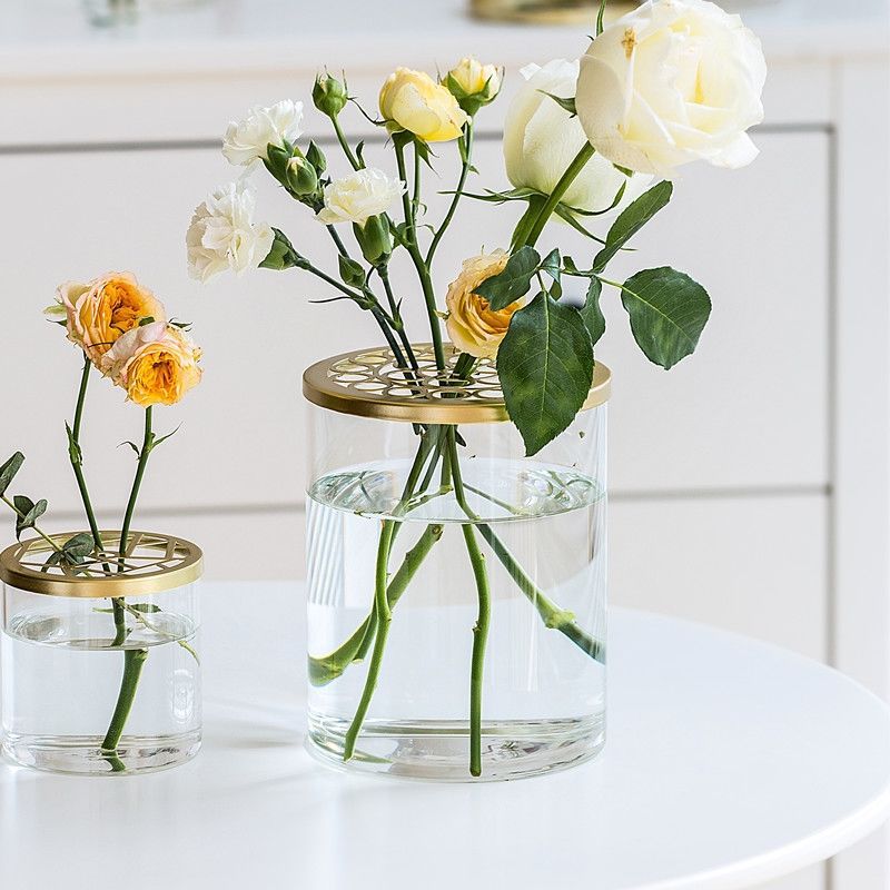 花瓶插花器简约创意透明玻璃网格盖摆件客厅鲜花水培固定一件批发